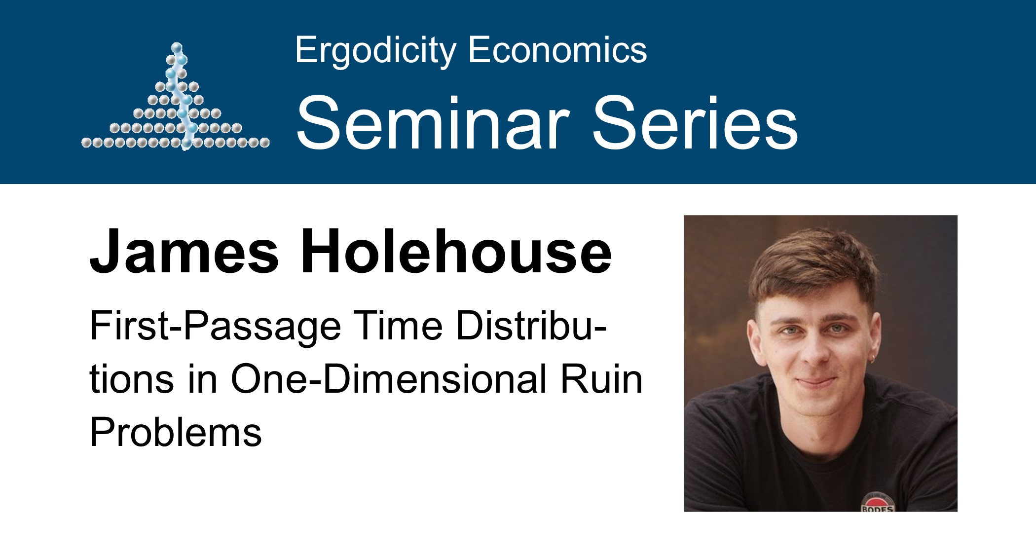 In this talk, James Holehouse (Santa Fe Institute) presents a solution for the first-passage time distribution on a generalized one-dimensional finite interval using the “backward” master equations approach and generating functions. He highlights several non-intuitive aspects of the problem: (I) First-passage times on disordered intervals cannot be effectively studied through simulations, (II) there is a highly variable spatial dependence of the first-passage time, and (III) the distributions of first-passage times appear as bimodal.